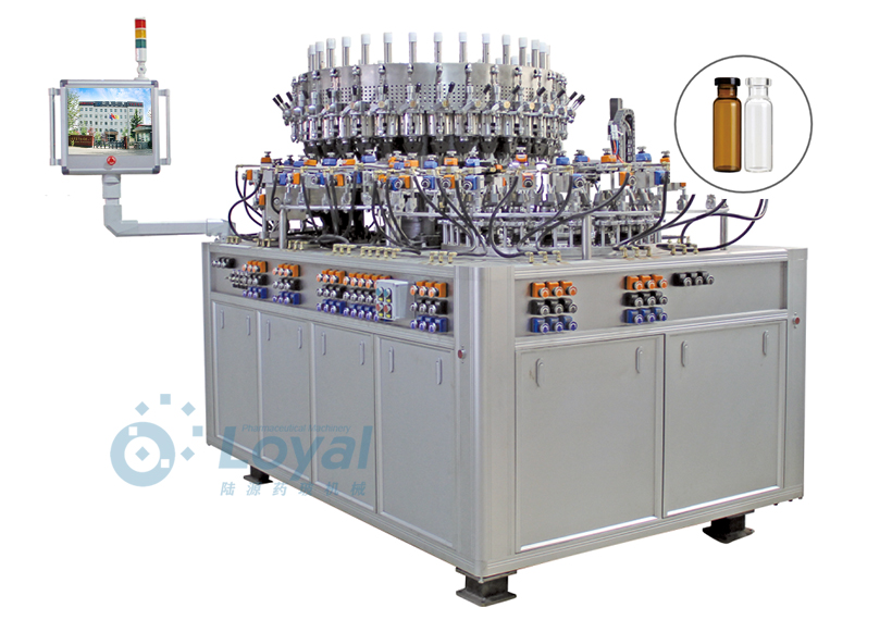 西林瓶生產(chǎn)線包括:自動上管、自動成型、經(jīng)機(jī)械手轉(zhuǎn)換至前端檢測線(也叫生產(chǎn)管控)、檢測線檢測的項(xiàng)目:1、瓶口內(nèi)外徑 2、瓶身長短 3、瓶身外徑 4、瓶口邊厚 5、瓶底內(nèi)凹尺寸檢測;經(jīng)檢測后的合格品再用機(jī)械手夾盤轉(zhuǎn)換至退火爐網(wǎng)帶上,經(jīng)高溫減除應(yīng)力后再降溫,通過氣動吸盤將回火后的小瓶轉(zhuǎn)換至后端檢測線,后端檢測(也是重檢也叫終檢),經(jīng)后端拍照檢測項(xiàng)目